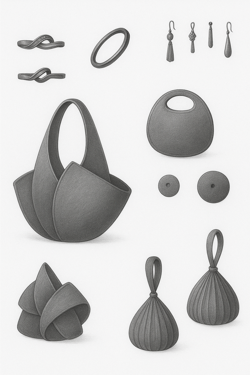 Inspired by the aerial views of Spanish landscapes and the harmony of the Fibonacci sequence, this collection explores proportion, emotion, and identity through form and movement. Each piece reflects a dialogue between nature, structure, and personal memory.